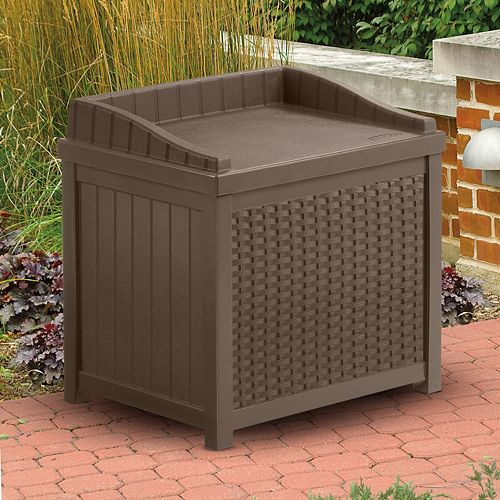 Suncast wicker brown patio & garden tables. The box is weather resistant and can withstand extreme. The chest design and hinged lid allow for easy access to your tools and accessories stored inside. Suncast resin garden & storage sheds. Sit in style on the wicker resin storage seat.